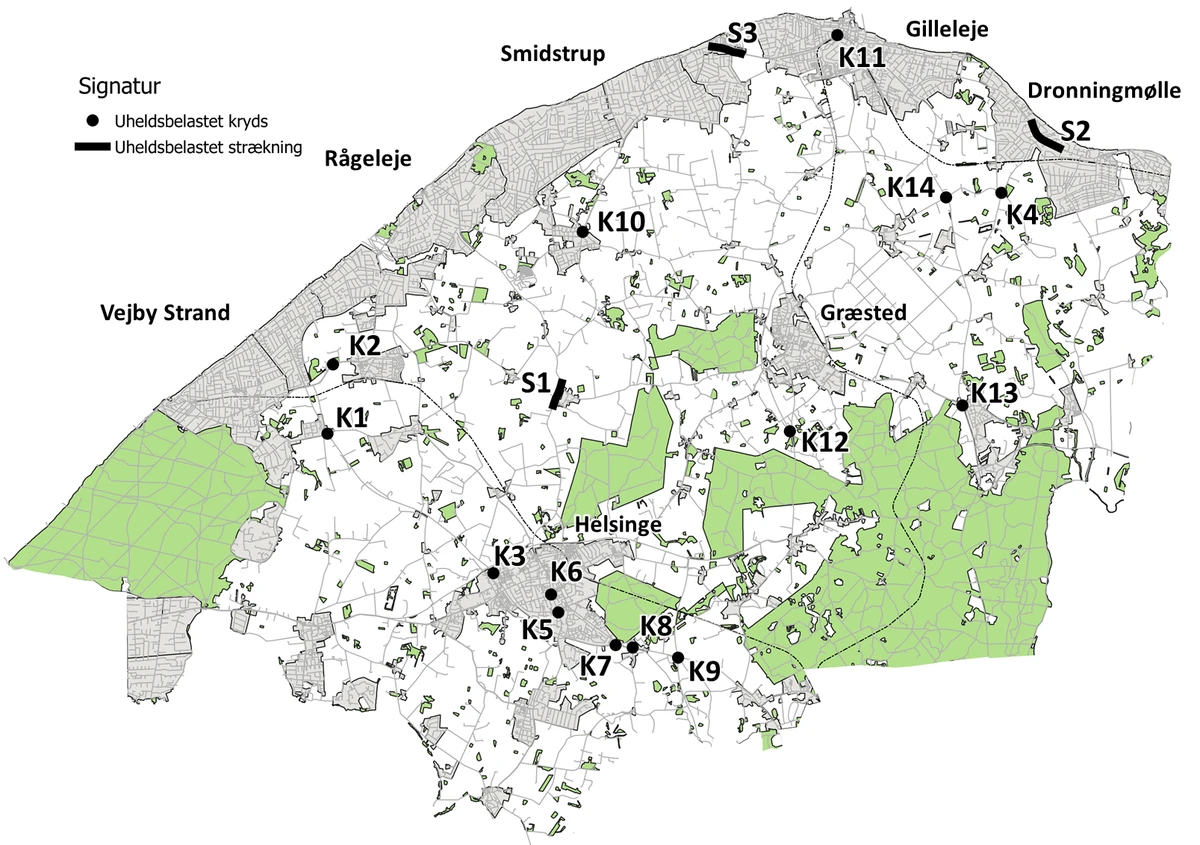 | 6 | Gillelejevej/Esbønderupvej/Vestvej | 21 | Dårlige forhold for cyklister og fodgængere |